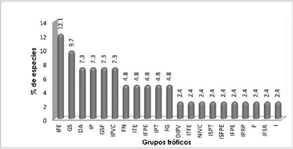 Figure 3 Representation of the percentage of species per trophic groups present in the study area.