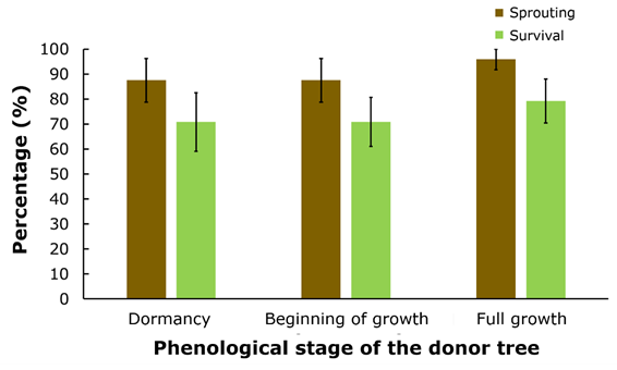 Figure 4 Graft sprouting and survival by phenological stage of the donor tree 90 days after grafting.