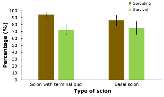 Figure 5 Graft sprouting and survival by type of scion 90 days after grafting.