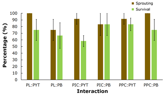 Figure 6 Graft sprouting and survival from the effect of the phenological stage×scion type interaction 90 days after grafting.