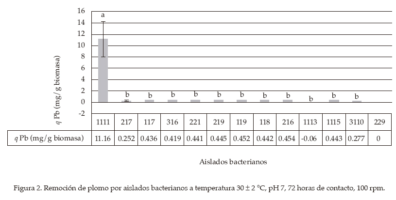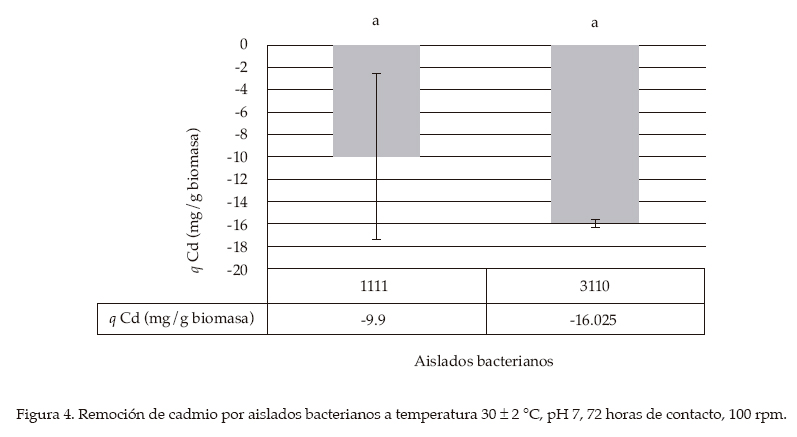 Los casos donde no se obtuvo remoción (valores 0 o negativos) sugieren que los aislados obtenidos presentan un mecanismo de resistencia que no implica la eliminación del metal en solución. Por otra parte, en estos resultados puede influir la competencia que se establece por los sitios de unión a los metales en la célula bacteriana, donde algunos cationes metálicos pueden verse más favorecidos. Este comportamiento diferente puede explicarse debido a las características de cada metal (valencia y número atómico) (Holan y Volesky, 1994) y al tipo de enlace que establecen con la biomasa microbiana, lo cual también influye en la afinidad (Volesky, 1999).