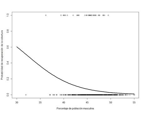 | Porcentaje de población masculina | -0.099 ± 0.037 | -2.640 | 0.008 | |