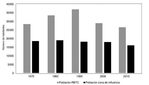 Figura 5 Tendencia de la población rural en la región Tehuacán-Cuicatlán (Reserva de la Biosfera Tehuacán-Cuicatlán [RBTC] y zona de influencia) en el periodo 1970-2010.