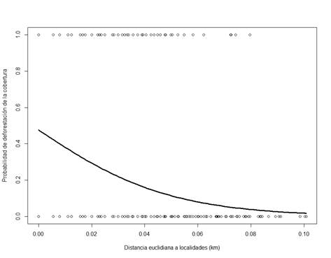 | Distancia euclidiana a localidades | -0.698 ± 0.109 | -6.385 | ˂ 0.001 | |