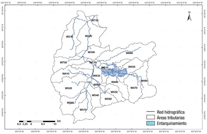 La localización geográfica de la zona del sistema de entarquinamiento es de los 19° 50’ 00’’ a 19° 56’ 00’’ de latitud norte y de 101° 40’ 00” a 101° 31’ 00” de longitud oeste (Figura 2), la cual está dentro de la subcuenca del río Angulo, que pertenece a la cuenca Lerma-Chapala. Esta zona está integrada en la Región Hidrológica 12 Lerma-Santiago, con una superficie de 2 062 km2 (de los 19° 35’ a 20° 15’ de latitud norte y de 101° 20’ a 102° 00’ de longitud oeste) que abarca 15 municipios: Angamacutiro, Chucándiro, Coeneo, Erongarícuaro, Huaniqueo, Jiménez, Morelia, Morelos, Nahuatzen, Panindícuaro, Penjamillo, Purépero, Puruándiro, Quiroga y Zacapu (Figura 3).
