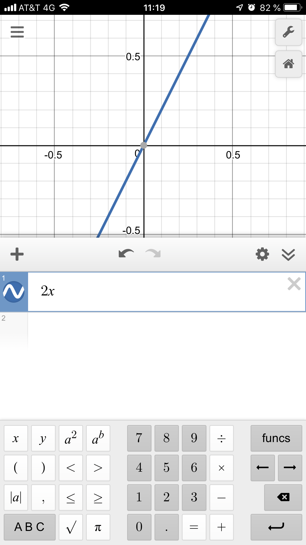 Figura 3. Gráfica de la función “espejo” en la aplicación Desmos (función f(x)=x)