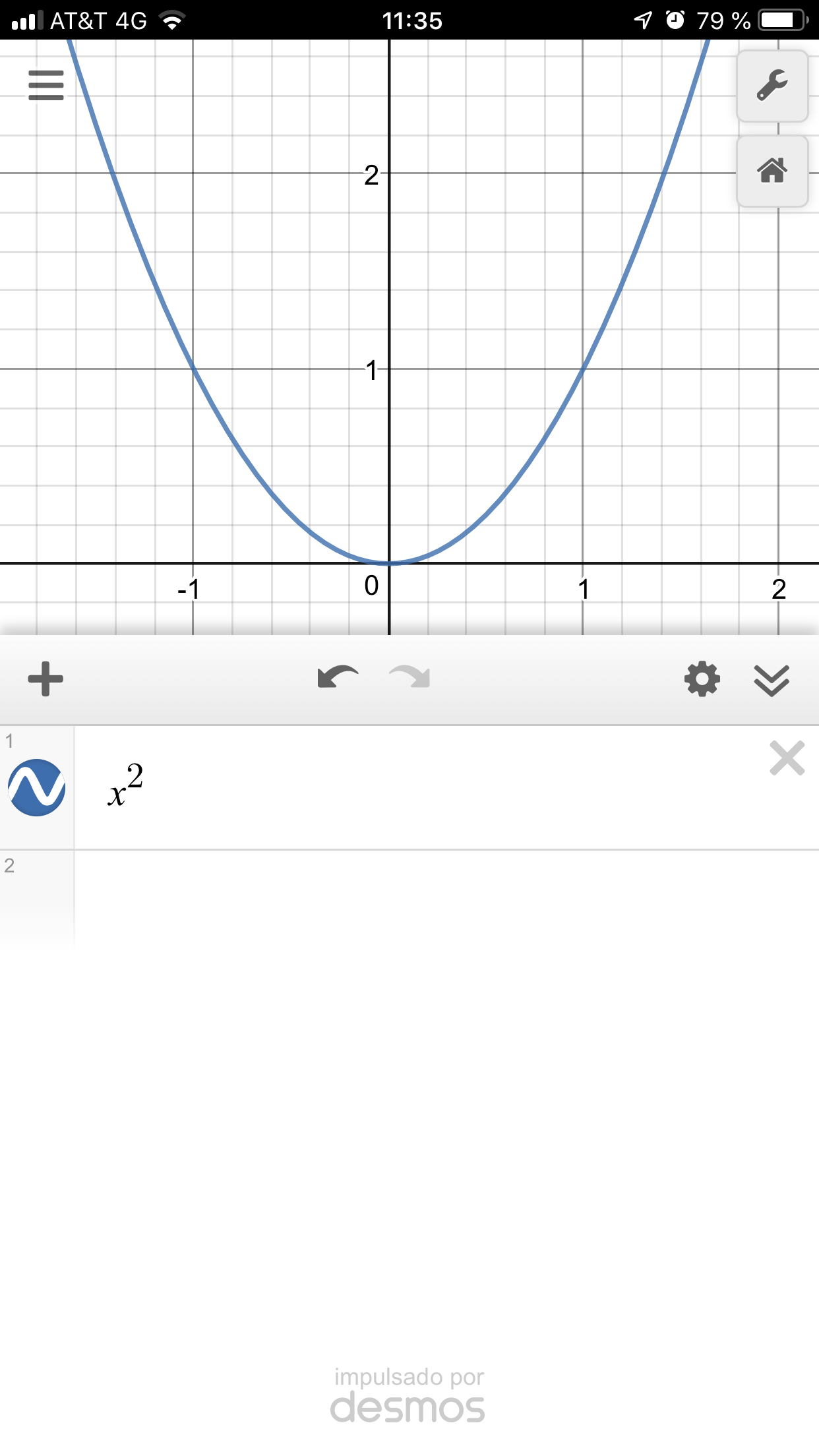 Figura 10. Gráfica de una ecuación cuadrática con foco en el origen y delimitada en el intervalo [-1,1]