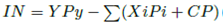 Donde IN = Ingreso neto, Y = Rendimiento (kg ha-1), Py = precio por kg, ∑XiPi = suma de costos variables, CF = costos fijos (Volke 1982). También se determinó la GPI con la ecuación:
