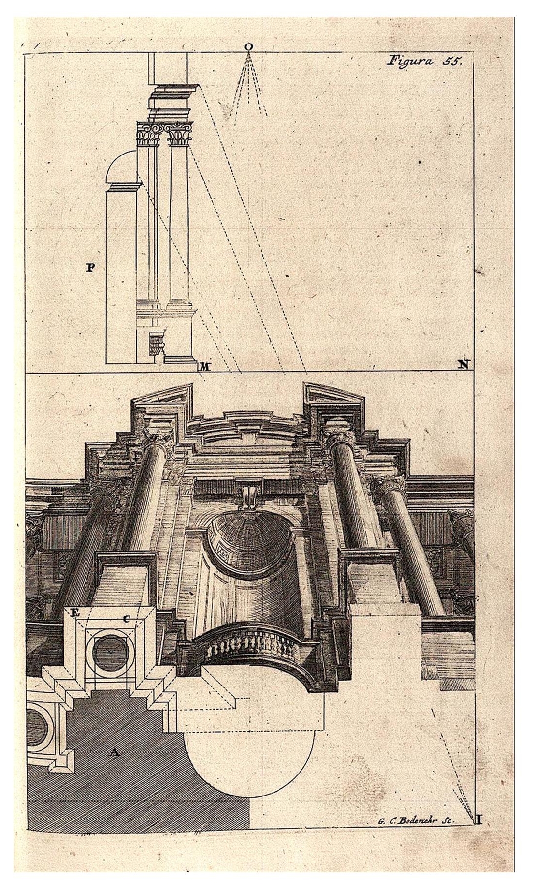 Figura 5 Figura 55 de la obra Perspectiva Pictorum et Arquitectorum (1693-1698), de A. Pozzo. Imagen de dominio público.