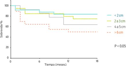 Figura 4: Análisis de sobrevida y su relación con el tamaño del tumor en pacientes con tumor mamario canino.