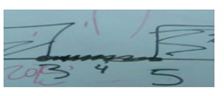| Luego mirando hacia sus compañeros pregunta: "¿Algo así era, o no?" Finalmente, por sugerencia de los compañeros borra la primera respuesta dada y corrige en: | |