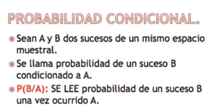 P( B / A ), donde suceso B es la probabilidad a calcular y suceso A es la condición.