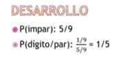 Esto nos quedaría así [proyecta la Figura 6], porque nos están preguntado 1 de 9 partido por la probabilidad de impar, 1 de 9 todo eso partido en 5 de 9, por lo tanto, esto quedaría 1 de 9 por 9 de 5 simplificamos y me quedaría probabilidad 1/5.