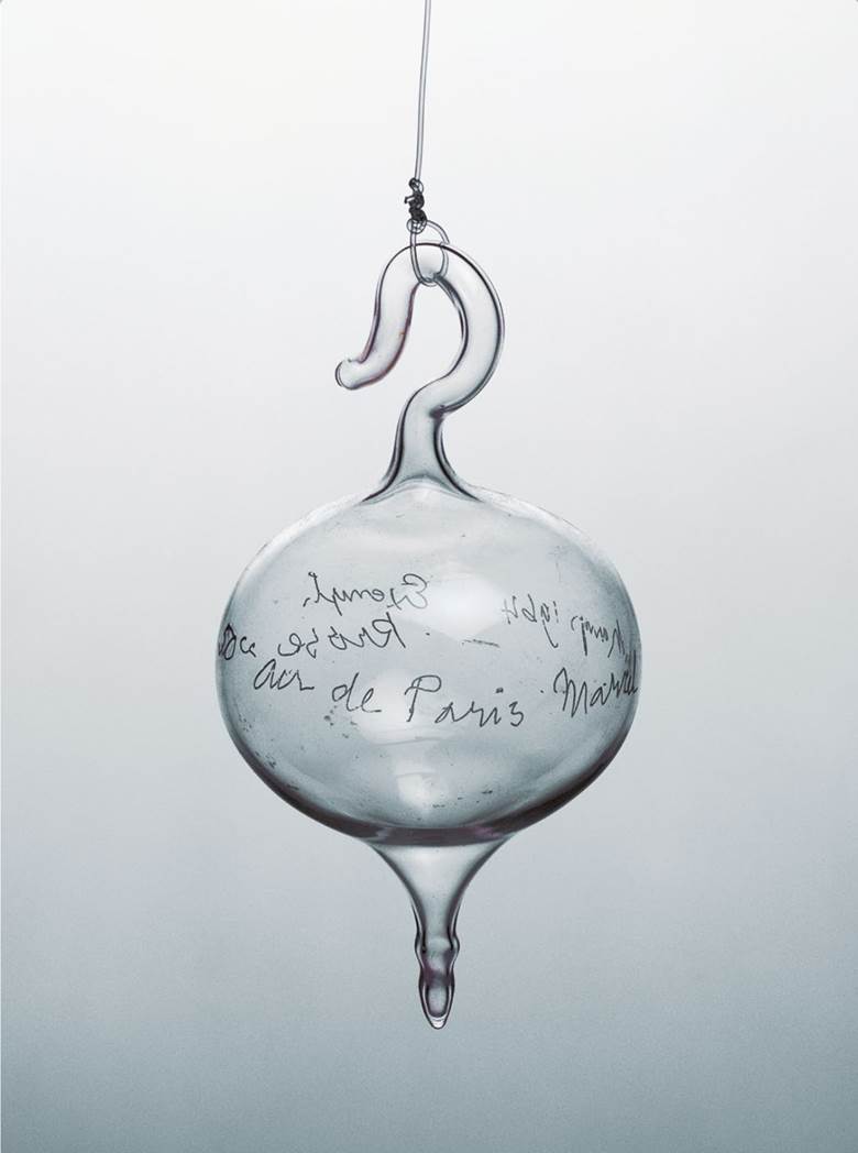 Hernández-Navarro comenta el principio de contradicción por el que Duchamp operaba en la mayoría de sus obras, a lo que llamaba la cointeligencia de los contrarios, algo ya descrito en su momento por Donald Judd como el principio de polaridad y que supone el contraste entre lo que vemos y lo que sentimos.30 Lo que percibimos y lo que en realidad existe y sabemos: la ampolla de cristal de Air de Paris se ve vacía, pero se sabe irremediablemente llena de aire. Lo que expresa esa plenitud es una idea contrapuesta a lo visual; algo que se encuentra vacío. “Aire de París, en definitiva, es París, es lo infraleve, es lo femenino, lo irrepresentable-representado, lo sublime, la materia informe enmarcada por la forma”.31