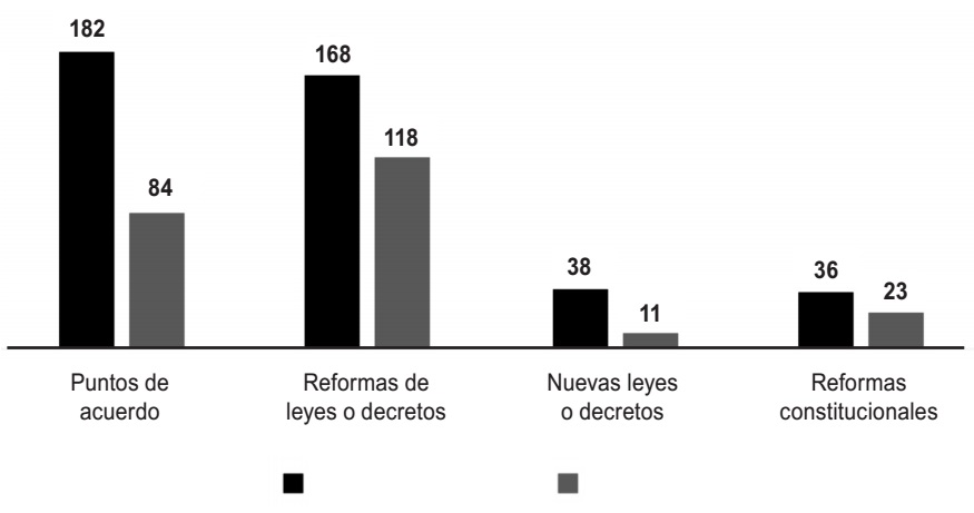 Sobre la actividad parlamentaria de las legisladoras con respecto a los legisladores, todavía quedan asuntos pendientes por atender: la ausencia de mujeres como presidentes de la Junta de Coordinación Política, máximo órgano decisorio del Poder Legislativo local; la disparidad en el número de piezas legislativas presentadas, la tasa de éxito desigual y la existencia de un número mayor de días que se demoran en aprobar las iniciativas presentadas por legisladoras.