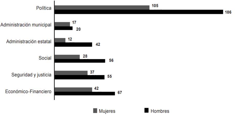 Cabe mencionar que en el ámbito político, que es el tema sobre el que más iniciativas se presentaron en la Legislatura LXII (291 iniciativas), 186 fueron de varones (64 por cierto) y 105 de mujeres (36 por ciento).