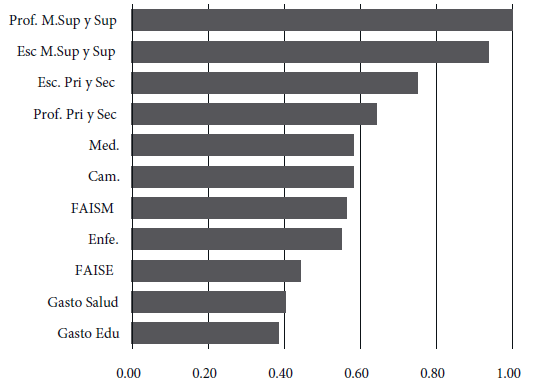 Lo expuesto anteriormente destaca la necesidad de analizar y construir una medida de eficiencia (denominada desempeño del gasto gubernamental) que de manera conjunta evalúe la incidencia del gasto público destinado a la educación, salud e infraestructura social (estatal y municipal), así como los recursos humanos (profesores de distintos niveles educativos, médicos, enfermeras) utilizados para la provisión de estos servicios, para aminorar las carencias sociales, a nivel subnacional.