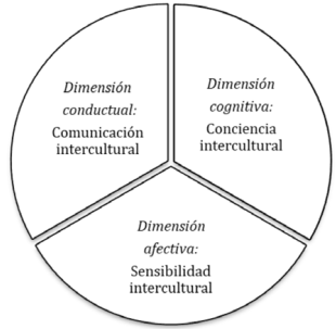 De forma general, la conciencia intercultural puede entenderse como el conocimiento y auto-conciencia de nuestras propias características culturales, así como de las normas, valores, datos (geográficos, económicos, sociopolíticos) y aspectos culturales de individuos originarios de países (Rodrigo Alsina, 1997; Gudykunst 1991 citado en Sanhueza et al, 2012). La sensibilidad intercultural, por su parte, comprende la motivación y apertura mental para conocer y aprender sobre otras culturas (Chen & Starosta, 2006; Hammer et al., 2003; Deardorff, 2004; Gudykunst 1991 citado en Sanhueza et al, 2012). Finalmente, la tercera dimensión, relativa al aspecto conductual, se plantea a través de la llamada comunicación intercultural, entendiendo la misma como la flexibilidad conductual y adaptabilidad del comportamiento para comunicarse y lidiar con situaciones de estrés y ambigüedad relacionados a la interacción intercultural (Bhawuk and Brislin, 1992; Deardorff 2004; Gudykunst 1991 citado en Sanhueza et al, 2012).
