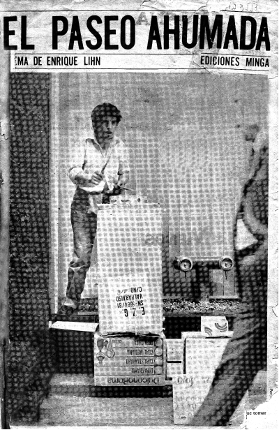 En la contraportada del poemario el poeta presenta su proclama que anticipa el futuro del Paseo Ahumada. Es un examen del espacio urbano-arquitectónico del que es “habitué desde el día mismo de su fundación” (Lihn 1983: s. p.) y que pasó de ser el oasis peatonal y del despegue económico, es decir, la escuela de todos los negocios, a ser “el pabellón en que se escribe el quiebre del modelo económico” (Lihn 1983: s. p.). Un espacio vigilado, lleno de sobrevivientes en el que, diariamente, se celebra el show protagonizado por los peatones y en el que “todos somos sus coautores, sus actores y sus espectadores” (Lihn 1983: s. p.). Este manifiesto da indicios del proceso escritural/visual que el poeta lleva a cabo para el poemario en un contexto de dictadura, señalando su compromiso con el acontecer político y social de los años ochenta, haciendo carne de las afrentas que sufren los más desvalidos de la sociedad chilena, reflejados en los mendigos del paseo. Por ende, se empeña en escribir, aunque “con las manos amarradas; proeza que quiere agregar a las que realizan, día a día, los subempleados y mendigos del Paseo, sus semejantes, sus hermanos” (Lihn 1983: s. p.).