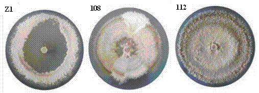 Con respecto a la tasa de crecimiento de Colletotrichum, el aislamiento Z1 presentó valores significativamente diferentes (Tukey, 0.05) con respecto al aislamiento 108 y 112, puesto que el aislamiento Z1 cubrió la placa Petri de 9 cm de diámetro en siete días, en comparación con los aislamientos 108 y 112 que alcanzaron su máximo crecimiento hasta los 11 días después de la inoculación.