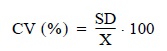 Para el estudio de la variabilidad interlaboratorio se calculó el coeficiente de varianza (CV) de cada muestra dividiendo la desviación estándar (SD) por el valor de la media de los laboratorios (X):