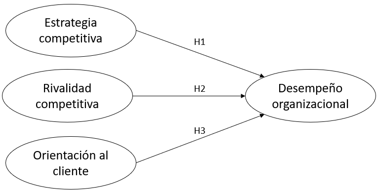 Es por ello que la presente investigación se planteó como objetivo examinar la influencia de la estrategia competitiva, la orientación al cliente y la rivalidad competitiva como determinantes del desempeño organizacional de empresas hoteleras asentadas en el estado de Hidalgo, México, con el propósito de cubrir un vacío detectado en la literatura. El resto del documento está estructurado de la siguiente manera, se expone un marco teórico e investigaciones empíricas que respaldan las hipótesis planteadas en la investigación. Se describe la metodología implementada y se presentan los resultados. Continua con la discusión y finalmente se presentan las conclusiones e implicaciones.