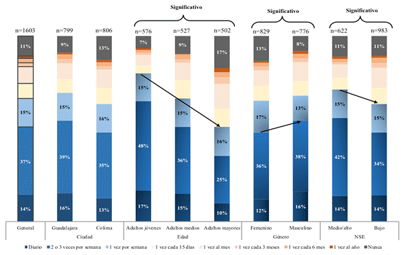 A lo largo de la exposición se buscarán las distinciones por género, por generación, por nivel socioeconómico (NSE) y por ciudad. Se buscó realizar comparaciones con otras encuestas sobre sexualidad a nivel nacional, sin embargo, como se mencionó, esto no fue posible pues las que se han llevado a cabo han partido de una perspectiva de salud pública y en particular de salud reproductiva femenina. Tal como señalan Gayet, Juárez y Escoto,