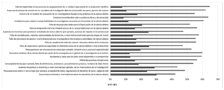 Figura 2 Barreras institucionales para la transición hacia la ciencia abierta