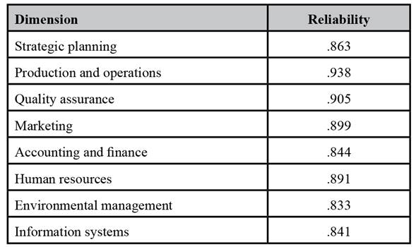 • Strategic planning: This dimension relates to whether organizations have objectives and term goals, policies for their achievement, and follow-up. It considers whether studies on environmental threats and contingency plans have been conducted. In theory, this dimension should be fully applied to all companies because it supports their reason for being and doing; however, evidence shows that sometimes this dimension is not considered a priority that would make a company more competitive (Aragón, Rubio, Serna, & Chablé, 2010; Castellanos, Gálvez, Montoya, Lagos, & Montoya, 2006; Du & Banwo, 2015; Estrada et al., 2009; Rosto, 2010).