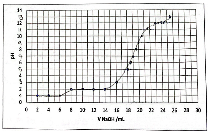 Figura 5 Fragmento del cuaderno de laboratorio del alumno con la representación gráfica sigmoidal característica de la valoración de un ácido fuerte con una base fuerte.