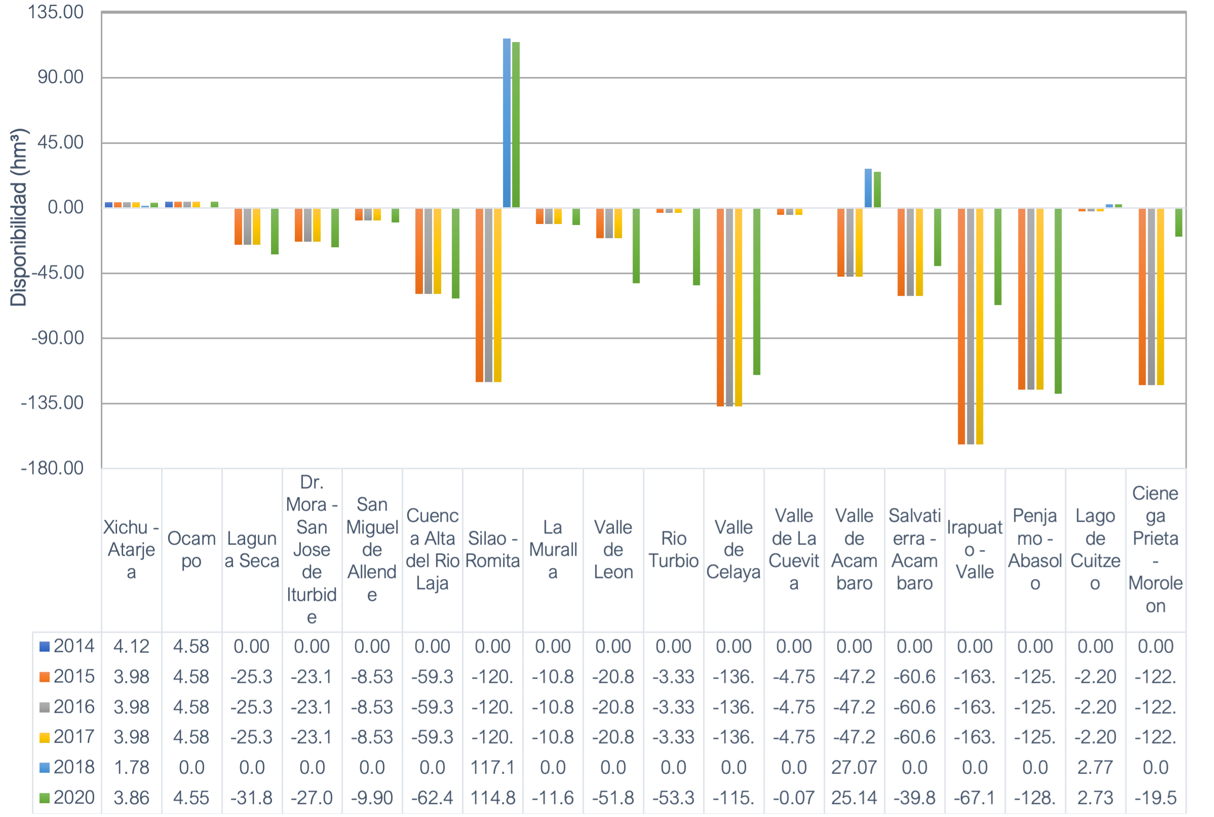 Figura 3 Disponibilidad de las cuencas hidrológicas del estado de Guanajuato.
