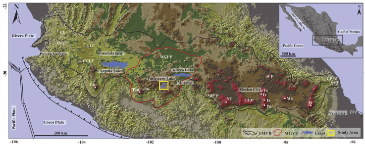La Faja Volcánica Transmexicana (FVTM) es una zona con una orientación E-O localizada entre las latitudes 19° y 20° N, que se extiende aproximadamente 1000 km desde el Pacifico hasta el Golfo de México. Su origen está relacionado con la subducción de la placa de Cocos por debajo de la norteamericana (Ferrari et al., 2012). Algunos de sus grandes estratovolcanes como el Popocatépetl y Colima, son reconocidos por su gran tamaño y actividad volcánica reciente. La mayoría de los volcanes que comprenden la FVTM son conos de escoria monogenéticos, y aunque la total cantidad total no se conoce con exactitud, se estima que son mas de 3000 (Hasenaka y Carmichael, 1985b).