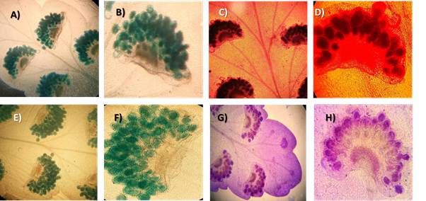 Cuando se utiliza únicamente GV se tiñen con mayor intensidad las paredes celulares, pero se pierden detalles de la pinna del helecho, en el caso de ST se tiñen bien las paredes celulares, sin embargo, el color rojo se impregna de tal forma que impide ver con claridad la diafanización del tejido tanto en los helechos como en Pyracantha koidzumii.