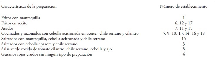 Table 1 Characteristics of foods prepared with red agave worm (Comadia redtembacheri H.) in the turistic area of San Juan Teotihuacan, Mexico.