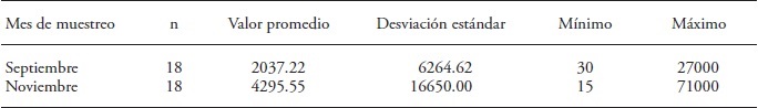 The standard deviation was also higher in the samples obtained in November. The average and maximum count of moulds was higher in the November samples. This could also be associated with the time and storage conditions of the frozen red maguey worms. In this sense, moulds and yeasts can grow in frozen food when stored in inadequate conditions. However, according Orberá (2004), the group yeasts that adversely associate with food is low: about 25 % of the identified species, of which only a low percentage might be harmful.