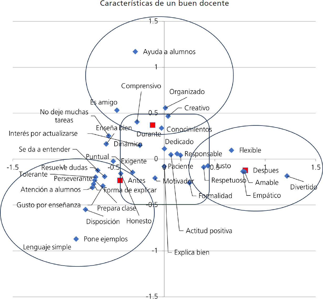 Figura 2 Análisis de correspondencias para las características de un buen docente