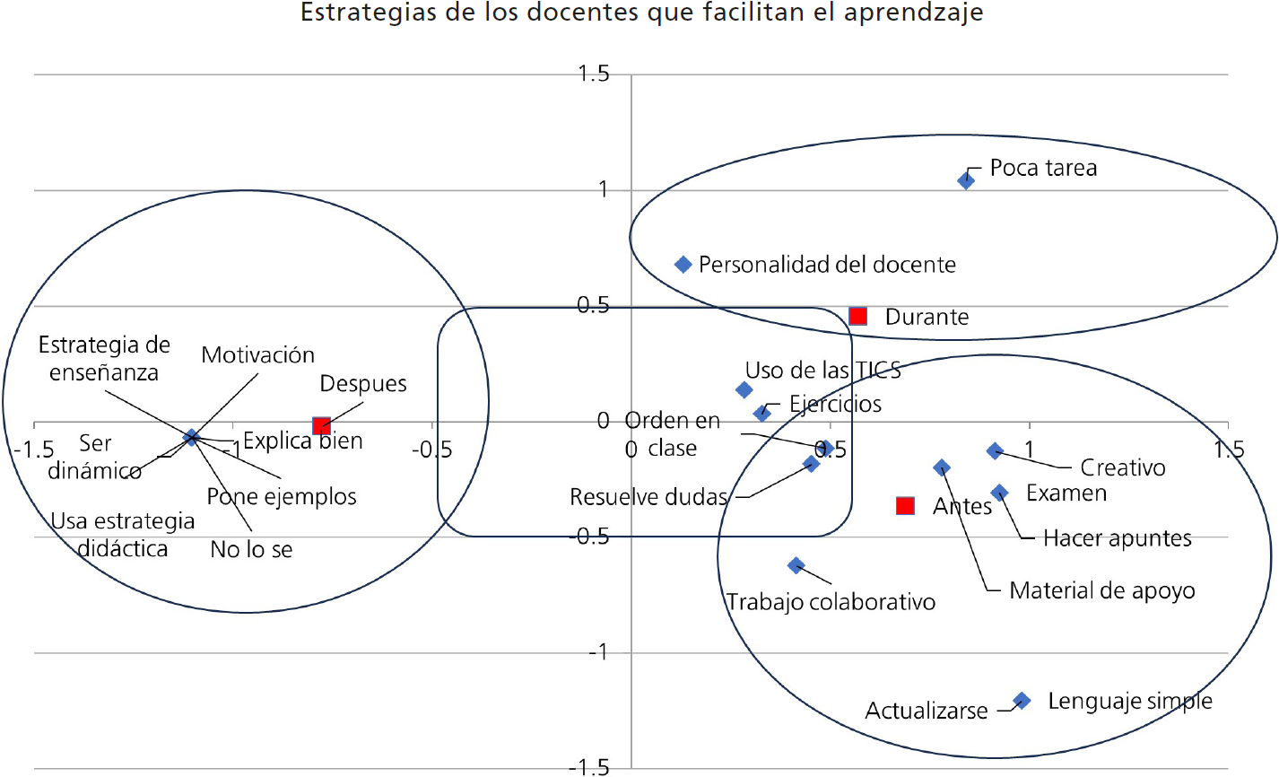 Figura 8 Análisis de correspondencias para las estrategias de los docentes que facilitan el aprendizaje