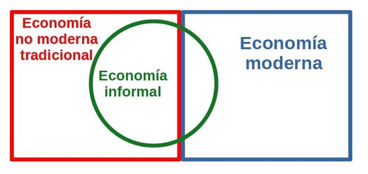 Por lo tanto, cuando se habla del PIB, el empleo, la inversión, el consumo y otros agregados macroeconómicos para analizar el comportamiento económico en una unidad territorial, es probable que estos se refieran en gran medida a la economía moderna de mercado.1
