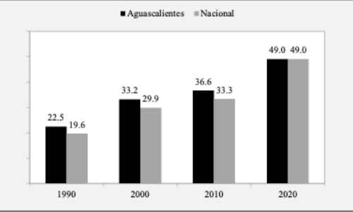 En solo tres décadas en Aguascalientes se duplicó el número de mujeres de 15 años o más que se integraron al mercado de trabajo, convirtiéndose en un pilar fundamental para el desarrollo económico y social de la entidad. No obstante, la brecha de género sigue siendo muy amplia con respecto a la participación laboral masculina que oscila alrededor de 79 por ciento, aun cuando el nivel educativo ya está al mismo nivel entre ambos géneros.
