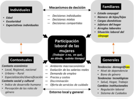 El incremento de la PLF ha representado un extraordinario desafío teórico y empírico para explicar qué factores explican las decisiones que toman las mujeres al momento de incorporarse al mercado de trabajo. ¿Cuáles son los factores individuales, sociales y contextuales que inciden en la decisión de las mujeres de incorporarse al mercado laboral? Y, ¿qué características y condiciones explican a qué grupo o tipo de ocupación buscan incorporarse?