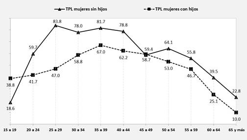Nota: Tasa de Participación Laboral (TPL) = Mujeres económicamente activas/Total de mujeres de 15 años o más