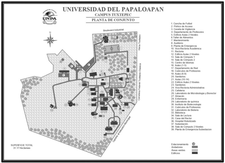 Figura 1 Plano y distribución del Campus Tuxtepec de la Universidad del Papaloapan, 2019