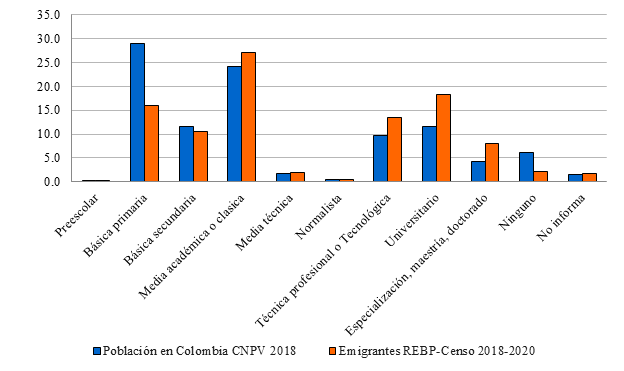 Fuente: Elaboración propia a partir de la base integrada de datos entregada por el DANE (2022), que cruza el REMI (2018-2020), el REBP (2018-2020) y el CNPV (2018).