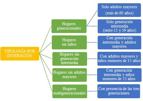 El impacto de la emigración no solo se refleja en la estructura del hogar según el parentesco, sino también en la composición generacional de quienes permanecen en el país de origen. La salida de un miembro del hogar puede alterar la convivencia entre generaciones, redefiniendo dinámicas de cuidado, apoyo económico y distribución de roles dentro del hogar. En este sentido, la tipología generacional permite comprender cómo se organizan los hogares según la edad de sus integrantes y cómo la emigración puede influir en estos arreglos.