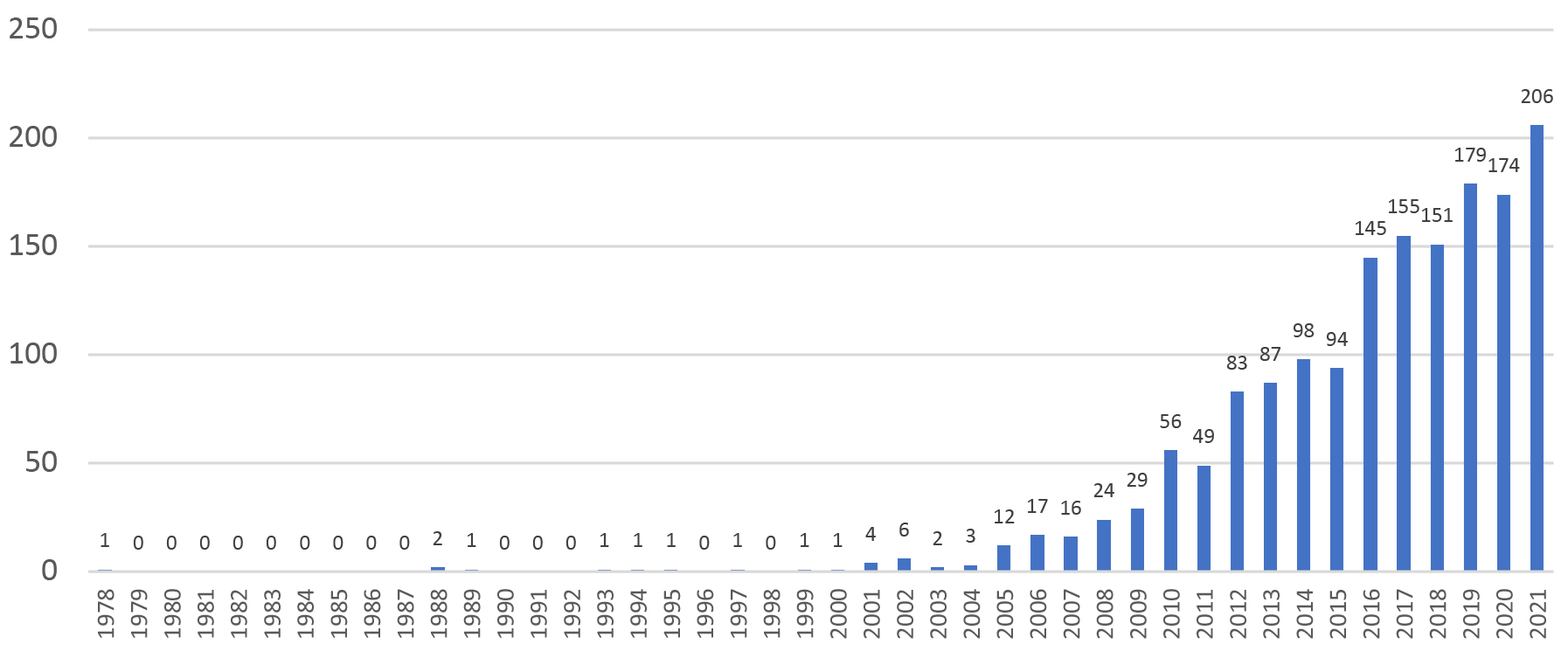 Gráfica 1 Número de publicaciones por año (1978-2021)