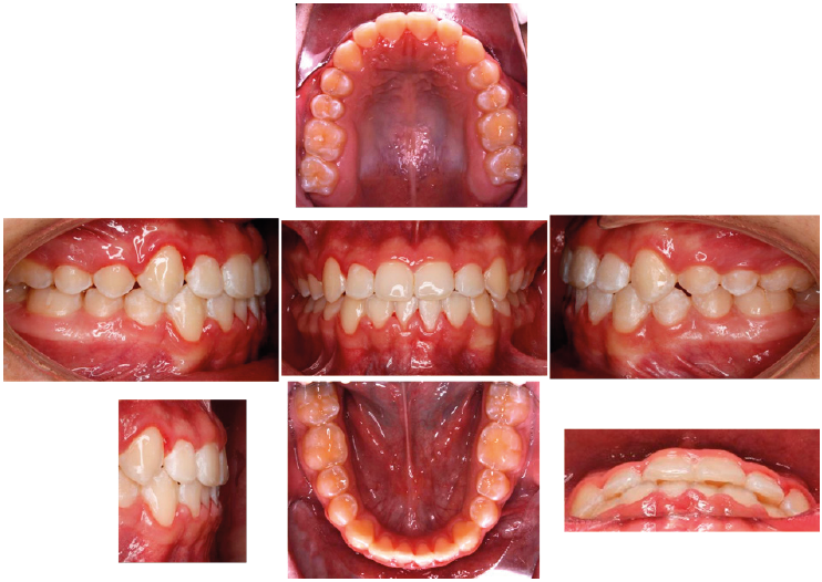 Se cerraron espacios tras la mesialización de caninos, primeros premolares y segundos premolares. Se colocó ligadura en bloque de 5-5 con e-link de 7-7 para cerrar espacios entre molares. Se colocaron arcos braided 0.021”x 0.025” superior y 0.019”x 0.025” inferior, y elásticos de asentamiento de 6 oz. Posteriormente se llevó a cabo un ajuste oclusal y se procedió al retiro de la aparatología fija (Figura 6) donde se observan los resultados finales y se confirmaron con los estudios de imagen (Figura 7). Derivado de las características del paciente se decidió optar por un retenedor Prefinisher (Figura 8).