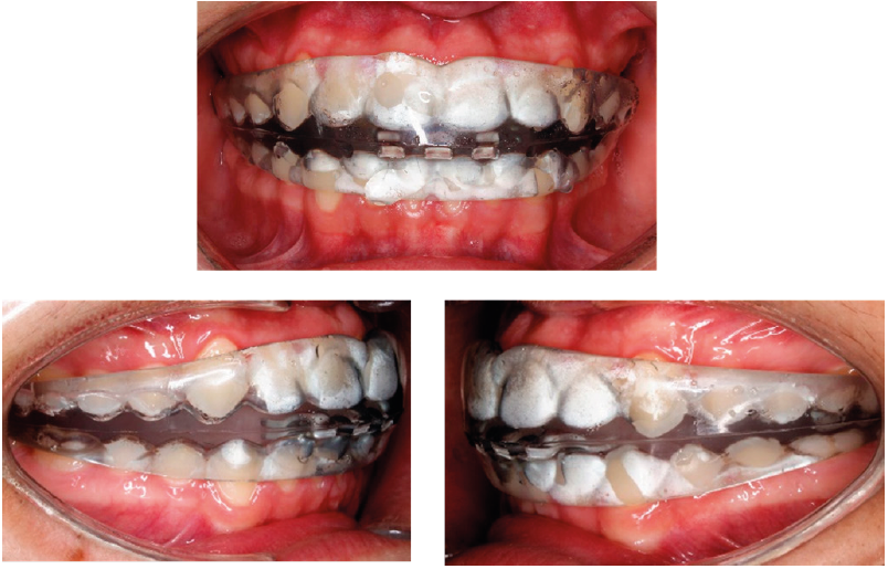 Williams et al.23 sostienen que las mejoras obtenidas en la posición sagital del maxilar mediante disyunción y tracción se mantuvieron a largo plazo, y que las recidivas observadas fueron debido al crecimiento mandibular, mas no una recaída en la posición maxilar, por lo que concluyen que los efectos de la protracción parecen ser estables. En el presente caso, se indicó el uso de una máscara de protracción reversa para la corrección de la Clase III esqueletal, la cual permite el control vertical de manera eficiente. Después del uso de la máscara se indica la mentonera como parte de la retención, para mantener la relación mandibular y para evitar una recidiva por parte del crecimiento de la mandíbula.