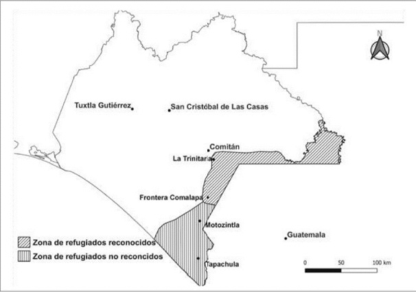 De esta manera, entre 1981 y 1984, se crearon campamentos en cuatro zonas de Chiapas: 1) Comalapa y Trinitaria, 2) Lagos de Montebello y la Selva de Margaritas, 3) Marqués de Comillas, en Ocosingo, y 4) Tapachula y Motozintla (véase mapa 1). No obstante, el gobierno mexicano y las autoridades migratorias reconocieron oficialmente a la población refugiada en las tres primeras zonas, los de la última quedaron en calidad de trabajadores temporales (Pérez, 2022).
