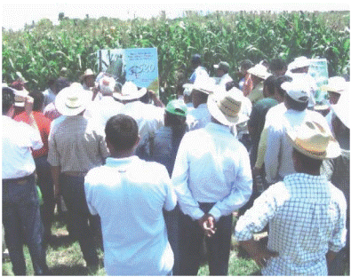 With the objective of divulging the advantages in yield and agronomic characteristics of the H-520, and the agronomic advantages and profitability of the parents in commercial seed production, to the farmers, agents of change and seed producers, training events and support activities for technology transfer were organized; among them, seven demonstrations with agricultural producers from five municipalities in the state of Veracruz, with an attendance of 410 producers. In the Cotaxtla Field, a massive event called Maize Producer Day 2007 took place, to which 483 producers, 113 technicians and 52 students attended. Among the attendees to the event, 45 municipalities and 10 states in the Mexican Tropic were represented: Veracruz, Tabasco, Oaxaca, Yucatán, Campeche, Tamaulipas, Hidalgo, México, Morelos and Chiapas. Technicians from seven seed companies and producer groups that multiply hybrids and cultivars from INIFAP attended and participated in the event. In these events the attendees were shown the advantages of the H-520 hybrid and the technology for grain and seed production. As a result of these activities, producer groups and companies showed interest and participation in the production of certified H-520 seed. The adoption by farmers has been satisfactory, by virtue of the fact that the demand for parents from the companies has been growing and the seed produced has been distributed and sown (Espinosa et al., 2003a; Espinosa et al., 2003b) (Figure 3).