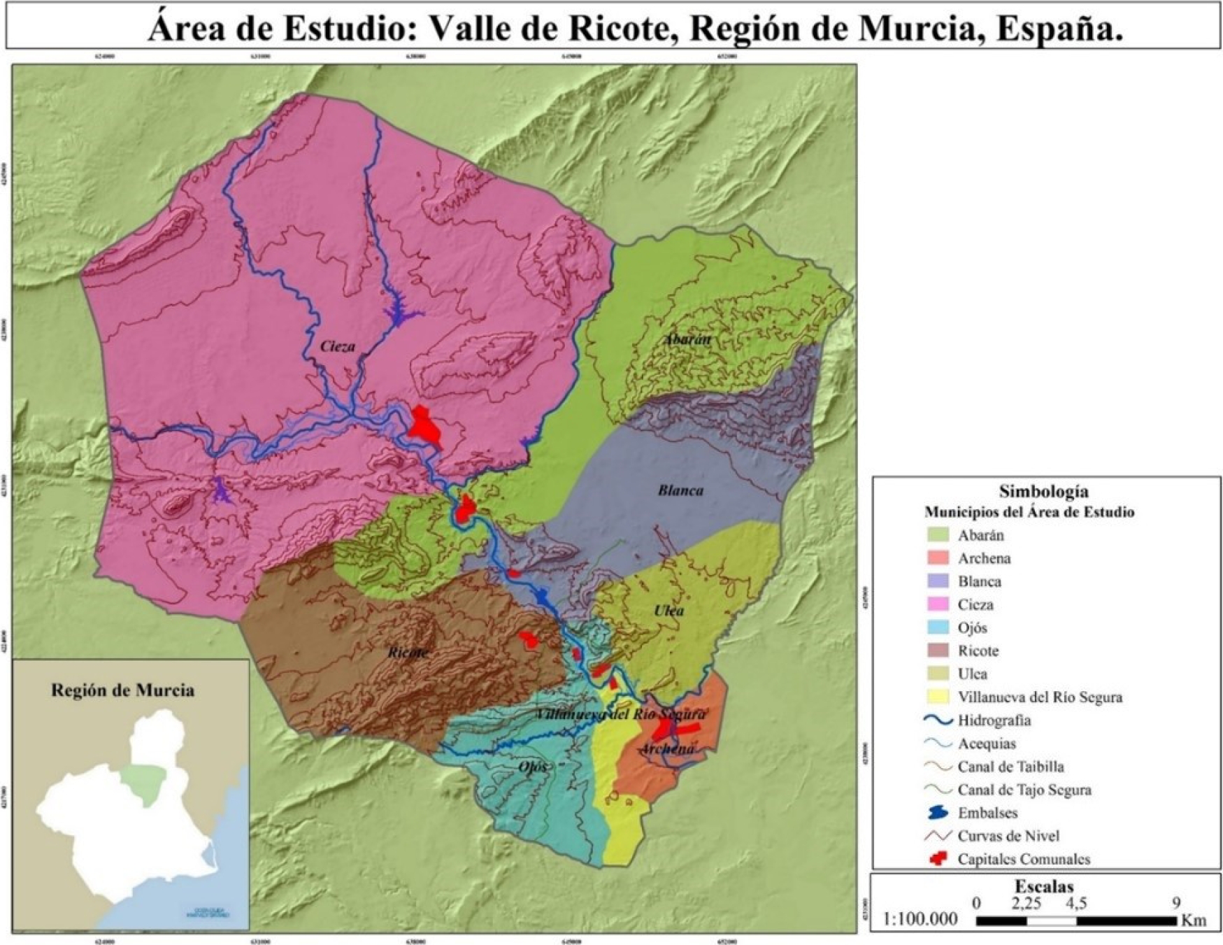 Figura 1 Localización del Valle de Ricote (Región de Murcia, España).